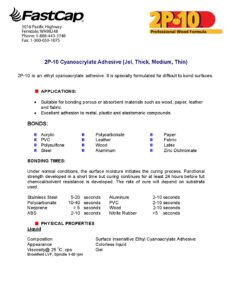 L’adhésif 2P-10 est une colle bicomposant à liaison rapide. Il suffit de l’appliquer et de pulvériser l’activateur pour créer une liaison puissante et permanente.