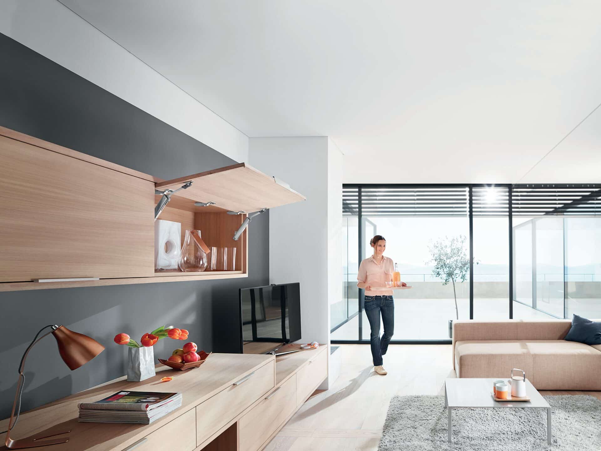 Aventos HK-XS est la ferrure compacte pour les petites portes relevables pivotantes des armoires et des meubles hauts. Grâce à sa petite taille, Aventos HK-XS offre de nombreuses possibilités de conception.