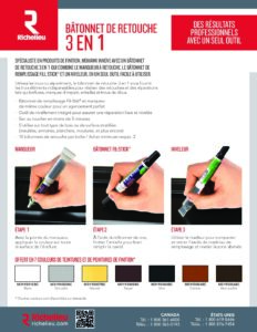 Le marqueur et le Fil-Stick sont de la même couleur, parfait pour les agencements. Un seul produit permet d’effectuer les réparations. Un outil de nivellement assure une surface lisse et à niveau.