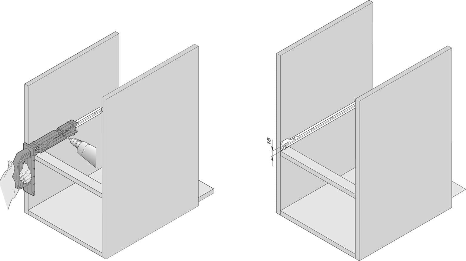 Minifix pour le positionnement précis des vis de fixation et des coulisses. Cet outil, essentiel en rénovation, est la solution optimale pour une installation précise et rapide des tiroirs de caisson.