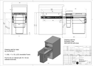 Le couvercle métallique demeure fixe à l’intérieur de l’armoire. Une fois le système de recyclage refermé, le couvercle couvre les bacs, empêchant les odeurs de se propager dans la pièce.
