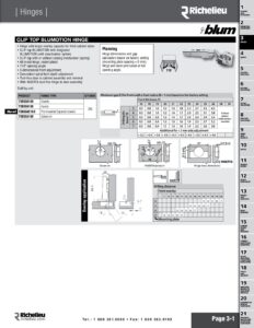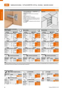 Charnière CLIP top 110 dg avec et sans fermeture amortie. Pour les portes plus légères comme en mélamine ou en pin, il est possible de mettre une penture avec fermeture amortie et une avec fermeture à ressort.
