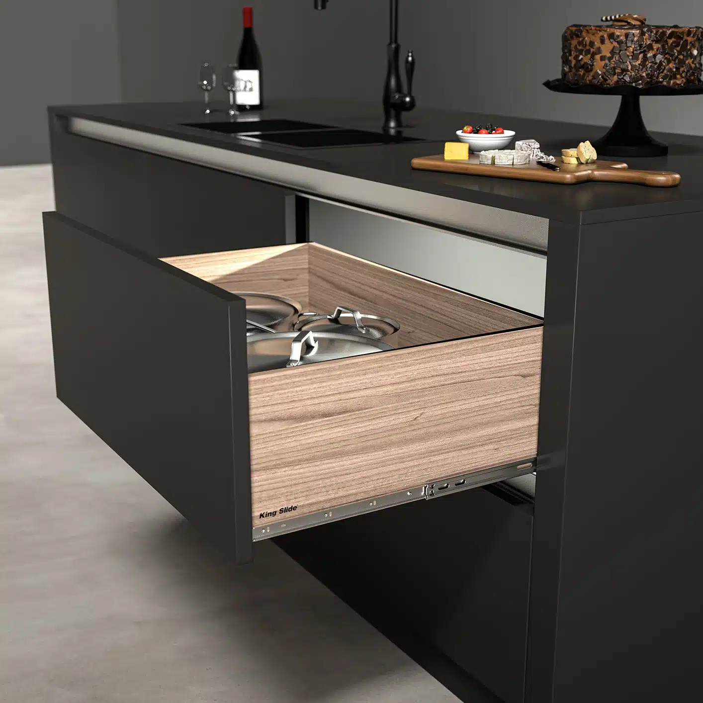 Coulisse à bille pleine extension avec amortisseur pouvant supporter jusqu’à 45kg