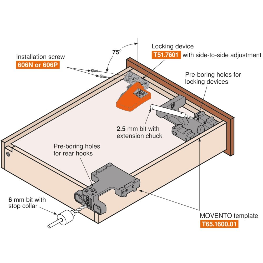 Dispositifs de verrouillage avec ajustement pour coulisses Movento.