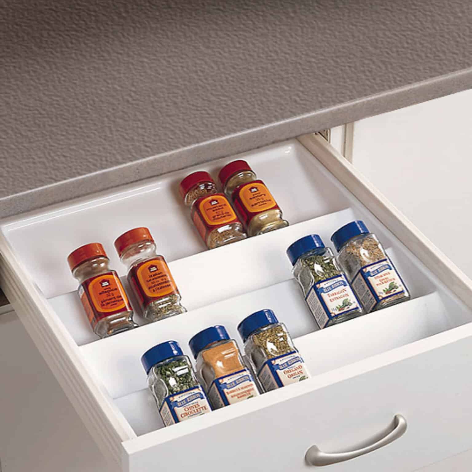Diviseur à épice idéal pour le classement du tiroir. Le diviseur est ajustable sur la largeur et la profondeur donc il doit être recouper. Vous pouvez facilement le faire avec une règle et en exacto.