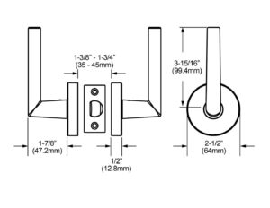 Épaisseur de porte: 1 3/8 à 1 3/4 po