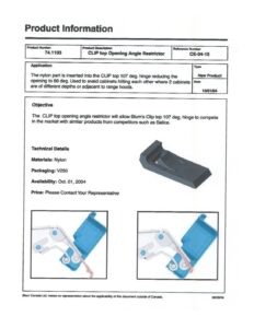 Réduit l’angle d’ouverture CLIP top de 107° à 86°. S’installe sans aucun outil et facilement. Ne s’enlève pas.