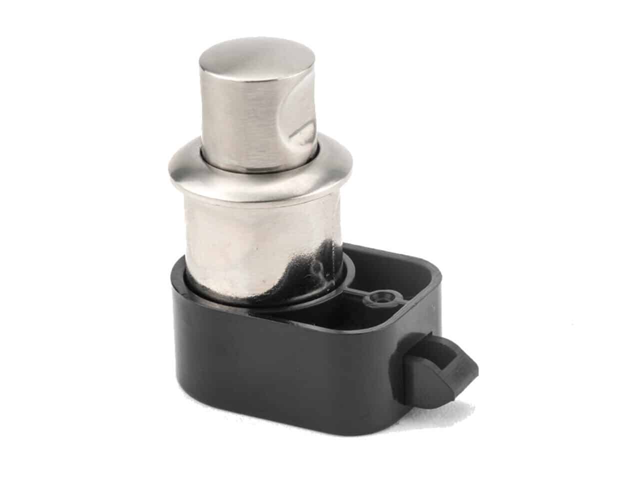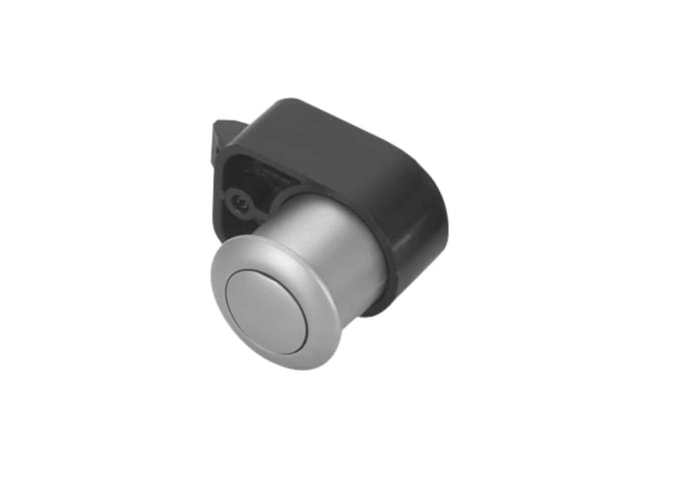 Posé sur la fermeture de la porte, la pression sur le bouton-poussoir enclenche et sécurise la porte afin qu’elle n’ouvre que lors d’une prochaine pression sur le bouton-poussoir.