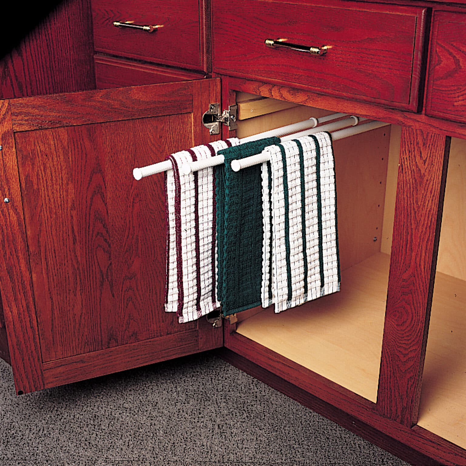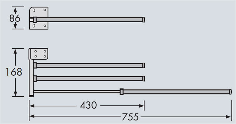 Porte-serviettes coulissant à trois branches avec tige et base en acier.