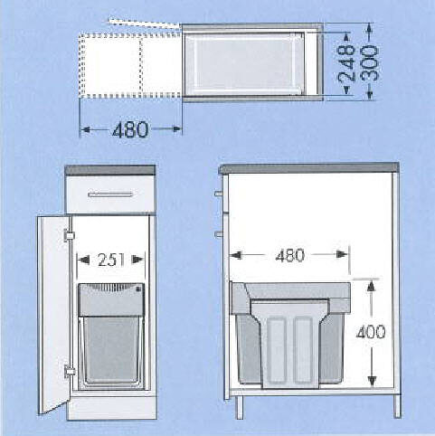 Poubelle coulissante 2 bacs de 15 L avec montage par le bas.