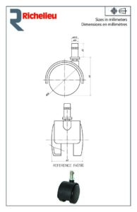 Roulettes jumelées munies d’une tige à serrage de friction. De robustesse standard, elles répondent à un grand nombre d’applications. Les meubles doivent être conçus pour recevoir la tige à serrage de friction.