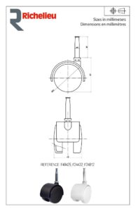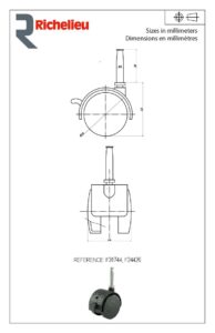 Roulettes jumelées pour meubles – tige à bois